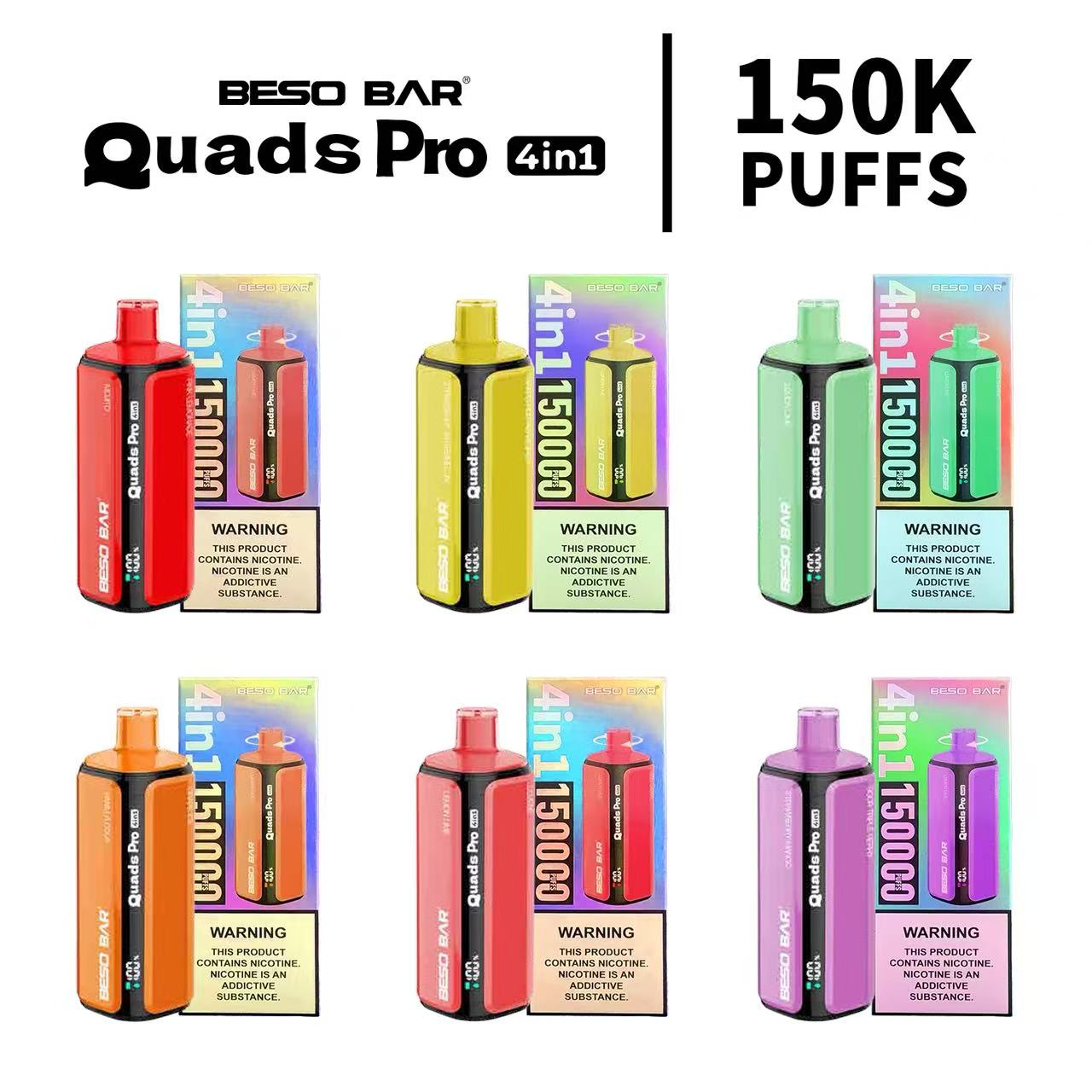 BESO BAR Quads Pro 4in1 150 000 впръсквания Еднократна Vape 4-in-1 Multi-Flavor